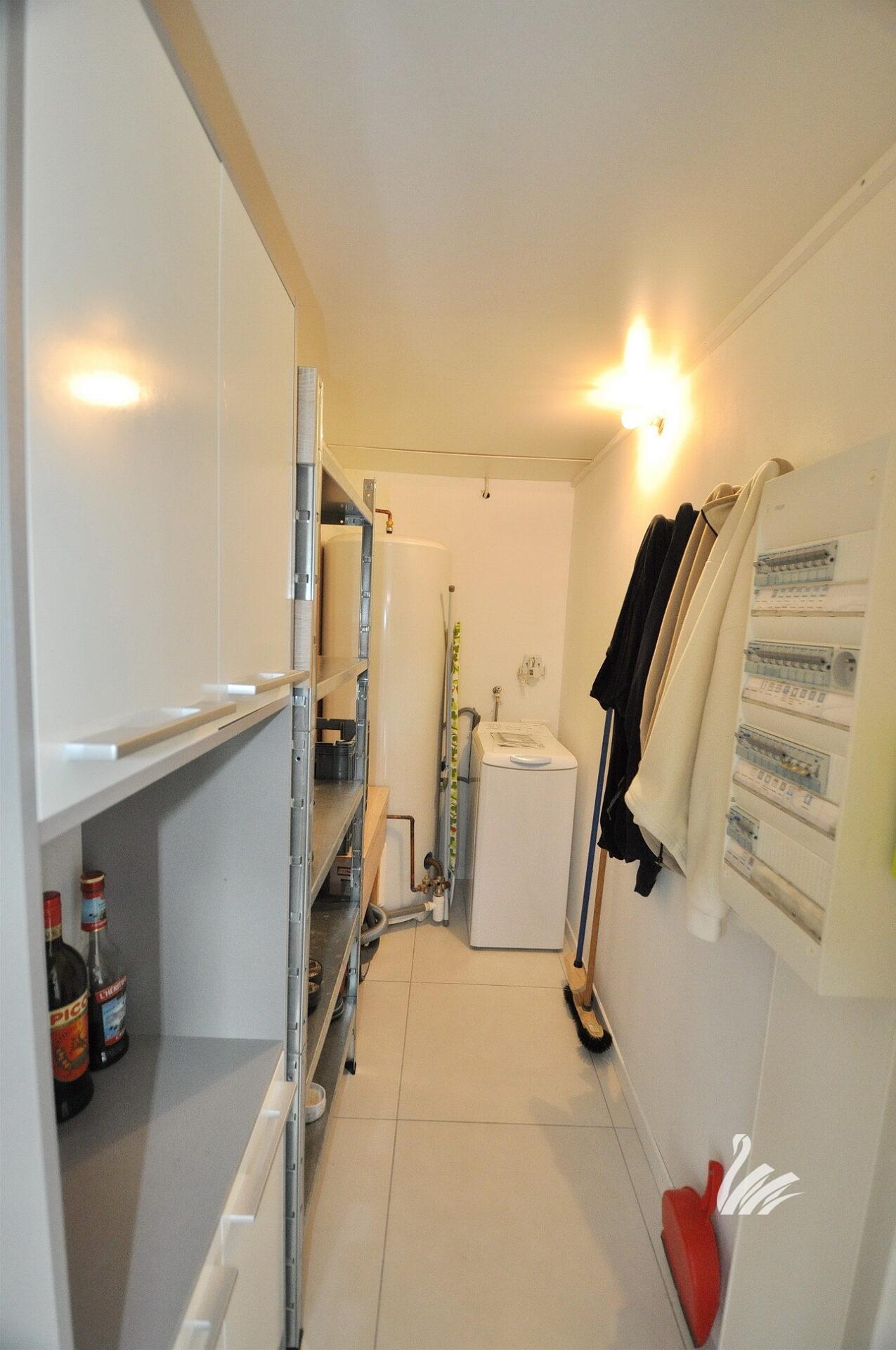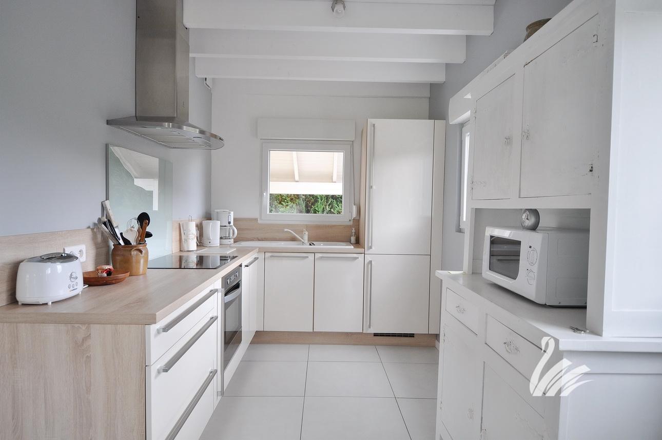REZ-DE-CHAUSSÉE : 1 hall d’entrée, 1 cuisine intégralement équipée sur salon séjour avec poêle à bois et accès terrasse et jardin, 1 cellier / buanderie, 1 salle de douches à l’italienne + meuble, 1 WC.