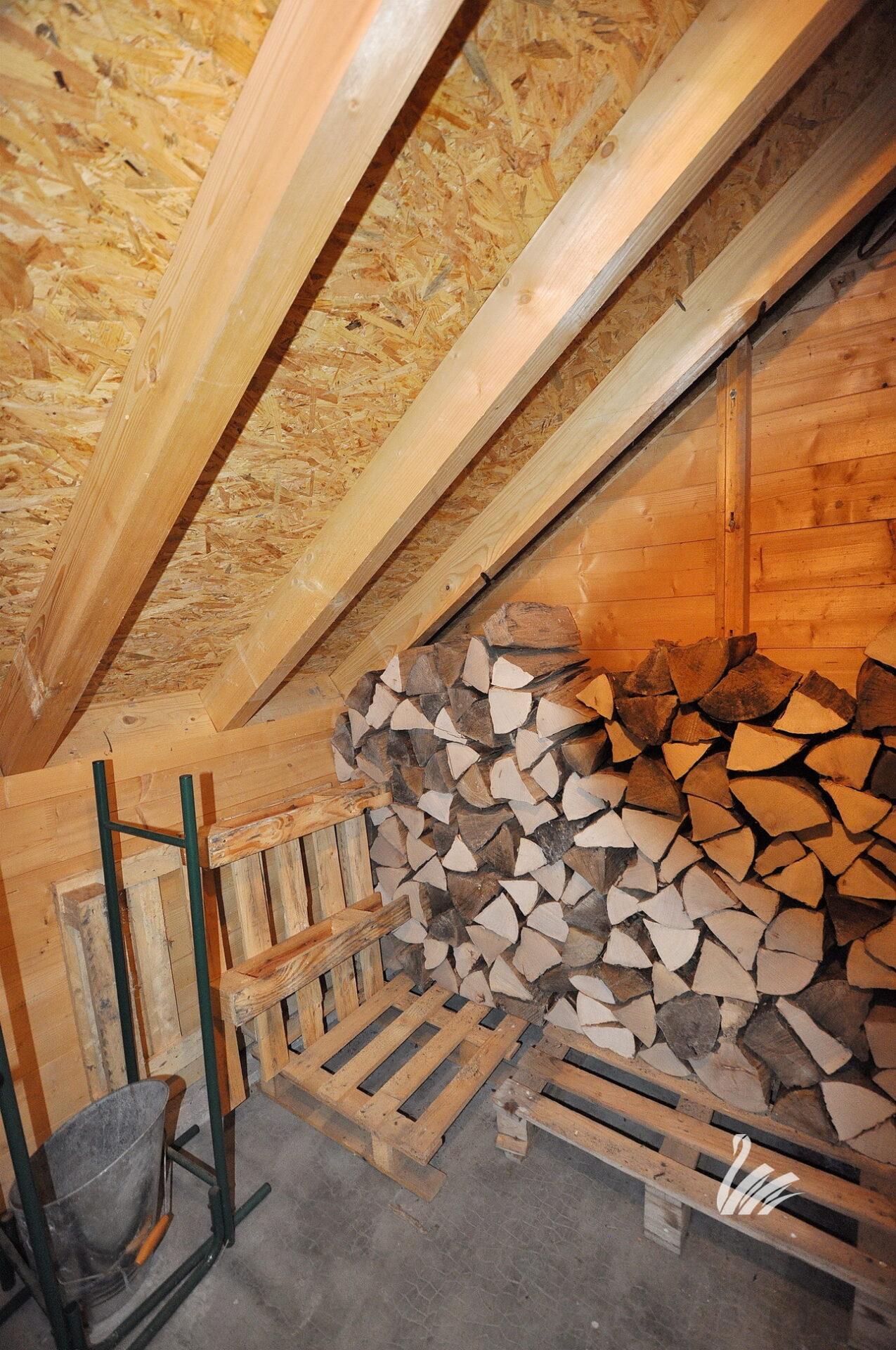 1 GRANDE REMISE ATTENANTE DE 20 M² composée de : 1 hall + dégagement, 1 cellier / bûcher, espace de rangements.