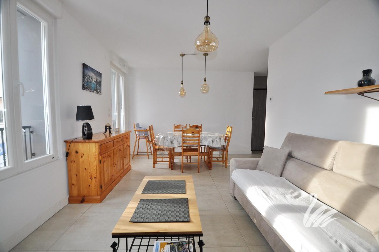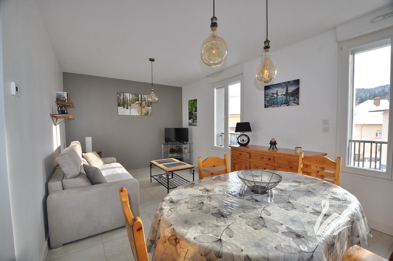 AU CENTRE-VILLE DE GERARDMER & TRÈS PROCHE DU LAC, dans un ENDROIT CALME , dans une copropriété de 8 logements (16 LOTS), APPARTEMENT RÉCENT de type F2 de 46.75 M² habitables avec TERRASSE de 15.80 M², CAVE PRIVATIVE & PARKING COMMUN.
