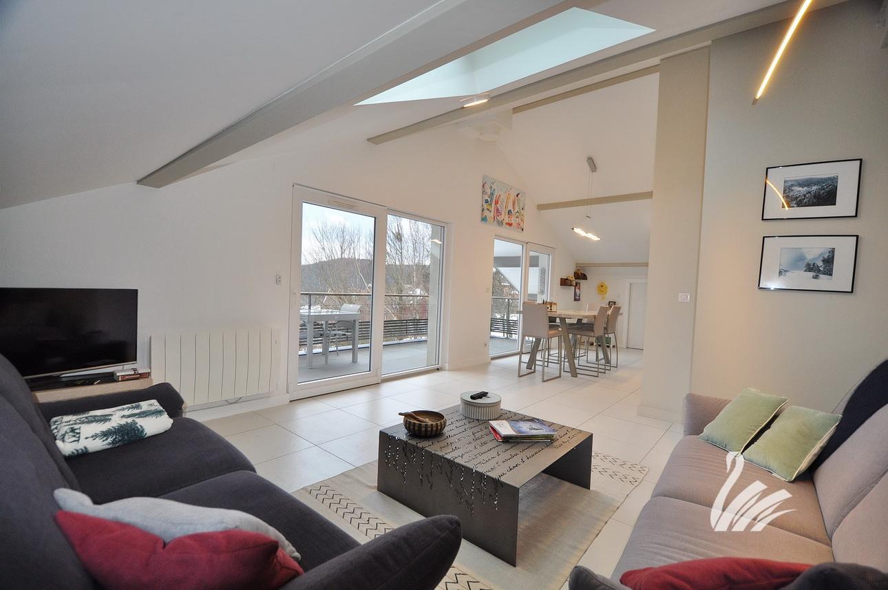 EXPOSITION SUD – ENDROIT TRÈS CALME – MAGNIFIQUE VUE SUR LE LAC & LES PISTES – ENVIRONNEMENT NATURE – PROCHE RUISSEAU – IMMEUBLE RÉCENT – TRÈS BELLES PRESTATIONS – APPARTEMENT LUMINEUX – TERRASSE DE 18.70 M² – CELLIER – PARKING – DERNIER ÉTAGE & UNIQUE APPARTEMENT A CE NIVEAU – EXCELLENTE ISOLATION PHONIQUE & THERMIQUE – CUISINE INTÉGRALEMENT ÉQUIPÉE – PLACARDS / DRESSING – PETITE COPROPRIÉTÉ : FAIBLES CHARGES.