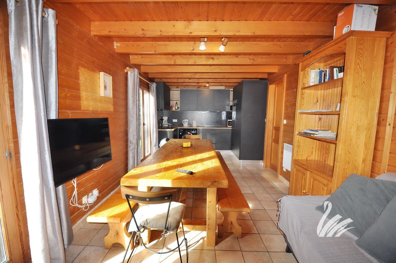 PROCHE DES PISTES, dans un ENVIRONNEMENT NATURE avec une MAGNIFIQUE VUE SUR LE LAC ET LA VALLÉE, CHALET DE PLAIN-PIED de type F5/6 de 75 M² Habitables + TERRASSE sur un TERRAIN de 650 M².