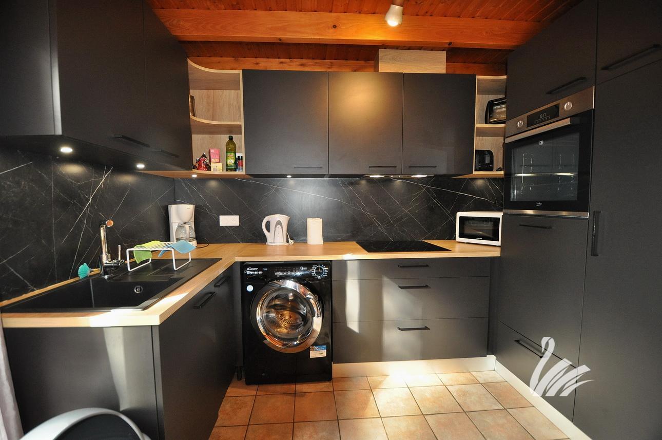 REZ-DE-JARDIN : 1 hall d’entrée / 1 espace cellier-rangements, dégagement, 1 salle d’eau, 1 WC, 1 salle d’eau + WC, 2 chambres, 1 cuisine intégralement équipée sur salon séjour avec cheminée insert & accès terrasse extérieure et jardin, 1 grande chambre + placards.