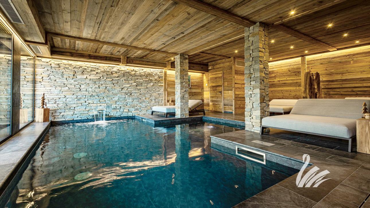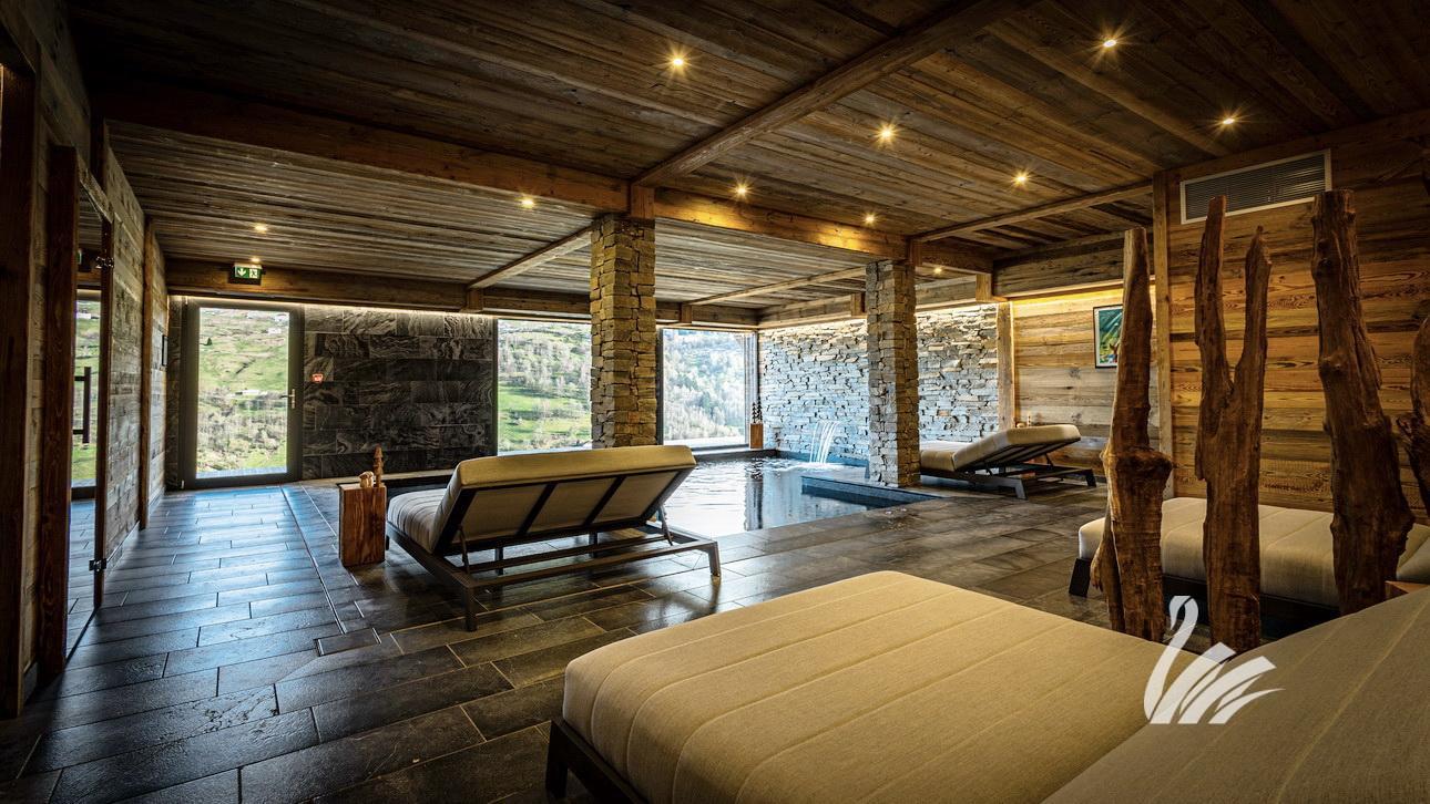 DÉPENDANCES : 180 M² DE TERRASSES – ESPACE DÉTENTE (PISCINE / SAUNA / DOUCHE / WC / SALLE DE MASSAGES) – 1 GARAGE – 1 LOCAL A SKIS – RANGEMENTS.